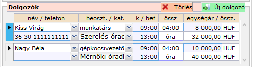 Ezekből az adatokból a rendszer automatikusan kiszámolja az egyes dolgozók óradíját.