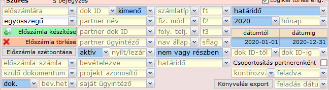 Képesek vagyunk üzleti partnerenként, azaz a számlák címzettje alapján csoportosítani a bizonylatainkat. Ebben az esetben kattintsunk a szűrőben a 'Csoportosítás partnerenként' felirat melletti jelölőnégyzetre.