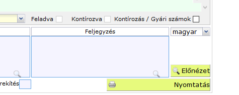 Ha egy számlával elkészültünk és minden adatot kitöltöttünk, a Bizonylat részletei űrlap jobb alsó sarkában két sárga színű gombot találunk: