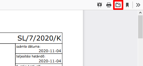 Kattintsunk a böngészőnk jobb felső sarkában megjelenő letöltés ikonra. Ekkor a saját, lokális számítógépünkre menthetjük el a számlát PDF formátumban.