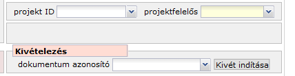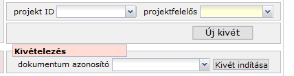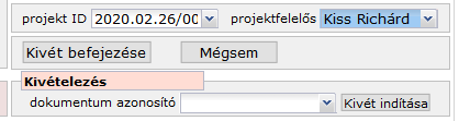 A kivét megindítása után is megváltoztathatjuk a projekt azonosítót, egyszersmind a projektfelelős szűrőelem is aktív, módosítható.