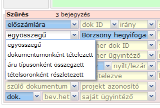 - egy vagy több szűrési feltétel alapján egyes bizonylatokat gyorsan megkereshetünk, egy listába rendezhetünk
